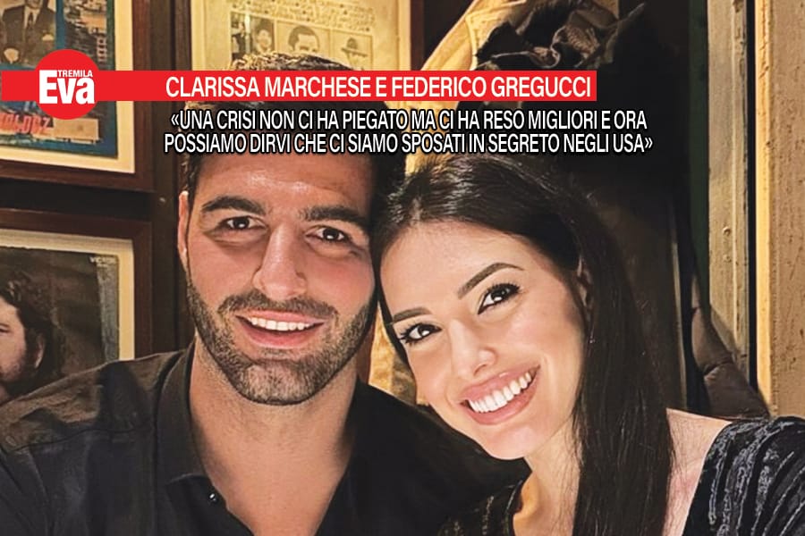 Clarissa Marchese e Federico Gregucci, 8 anni insieme, due figli e una crisi superata: «L’idea di lasciarci non c’è mai stata», rivelano e per la prima volta confessano di essersi sposati in segreto negli Usa